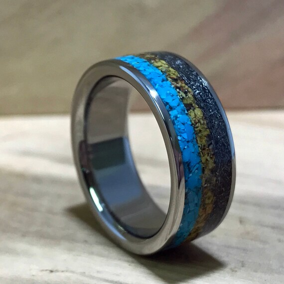 Titanium Ring Turquoise Ring Meteorite Ring Dinosaur Bone Etsy