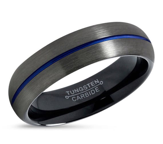 Gunmetal Blue Tungsten Ring Black Wedding Band 6mm Wedding Etsy