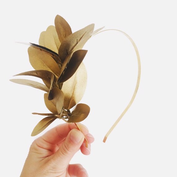 Gold Headband Gold Fascinator Golden Leaves Headband Laurel Etsy