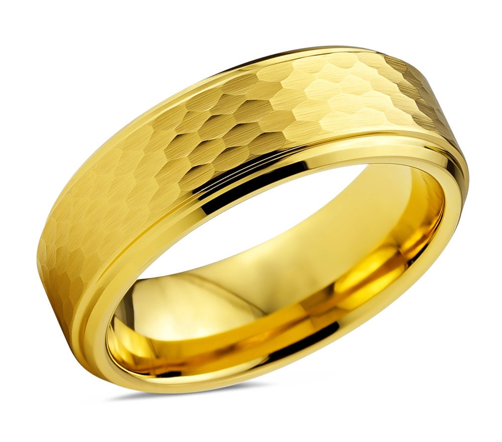 Mens Wedding Band Tungsten Ring Yellow Gold 18k Wedding