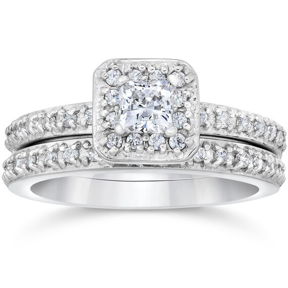 Princess Cut Diamond Halo Engagement Ring Wedding Band Set Etsy