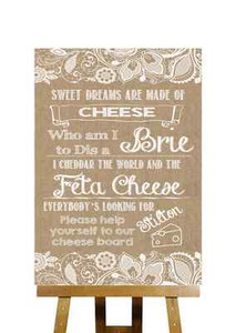 Burlap Lace Effect Funny Song Cheese Board Personalised Wedding