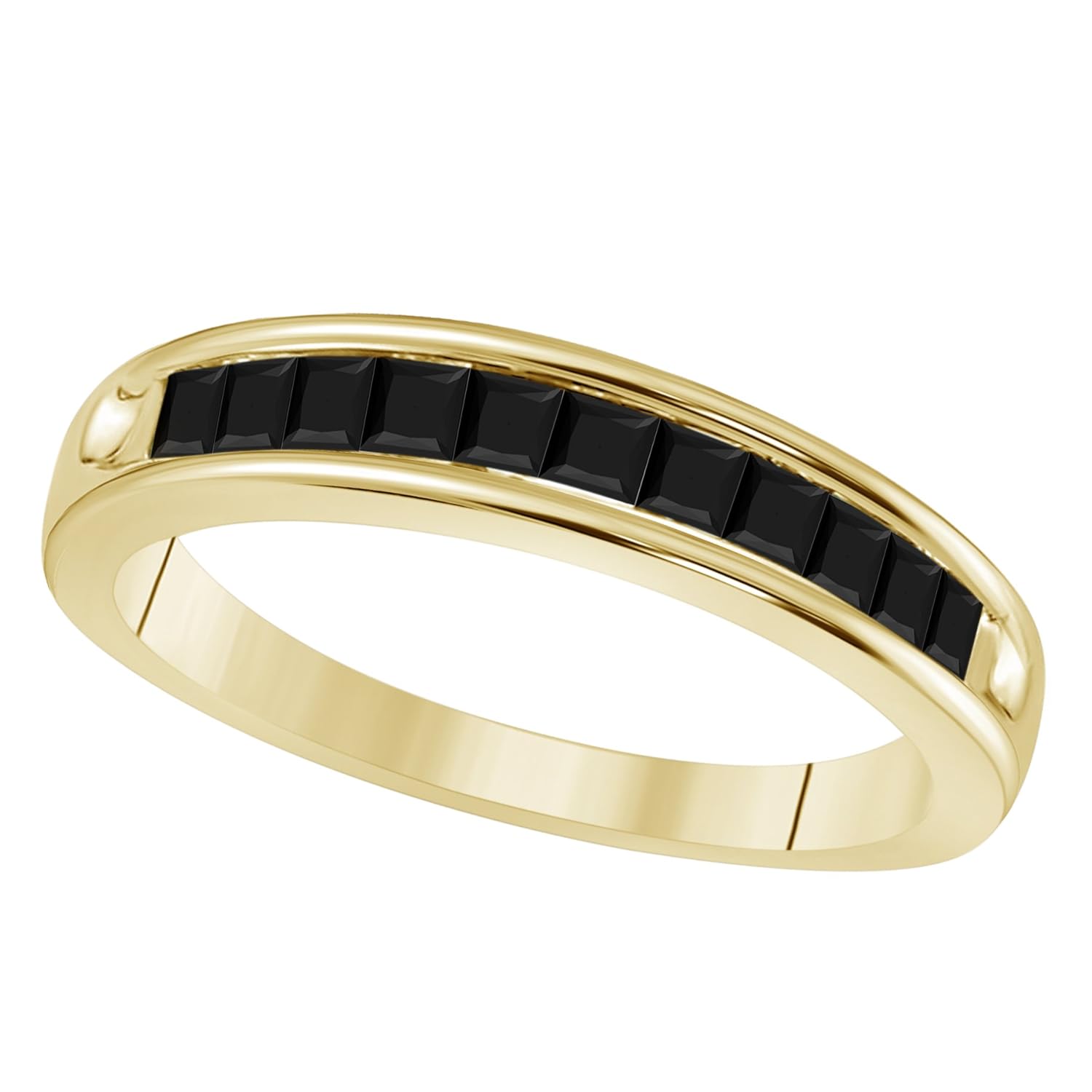 14k Yellow Gold Princess Cut Black Diamond Wedding Band Ring 1 2