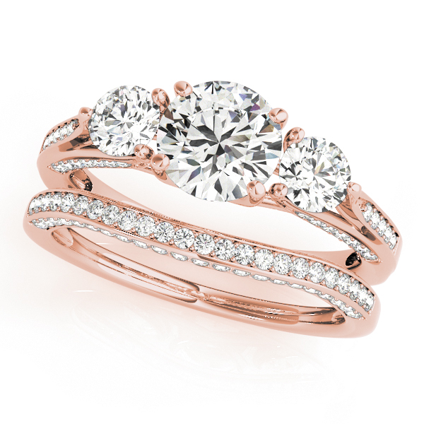 10k Rose Gold Three Stone Round Engagement Ring 50477 E 10kr