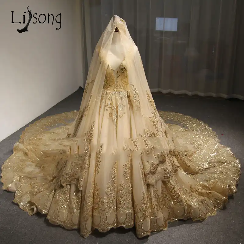 Luxury Dubai Lace Wedding Dresses With Sparkle Appliques Beaded