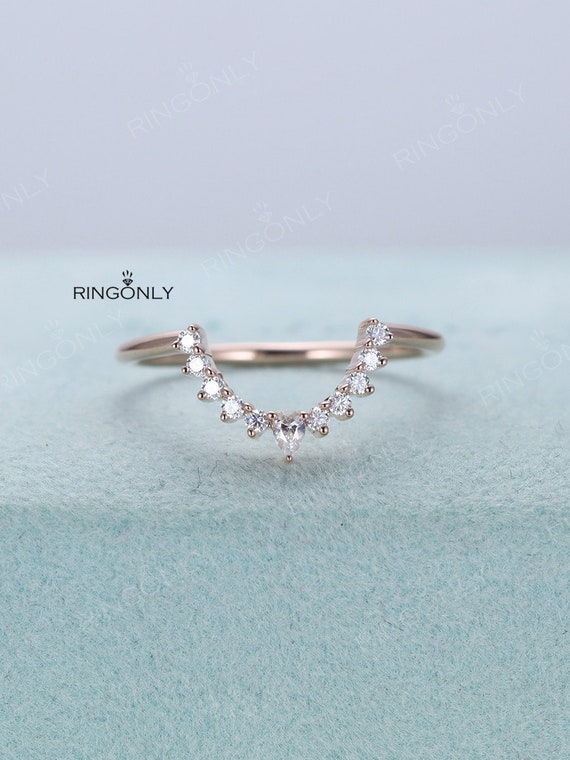 Curved Wedding Band Women Rose Gold Pear Shaped Diamond Etsy