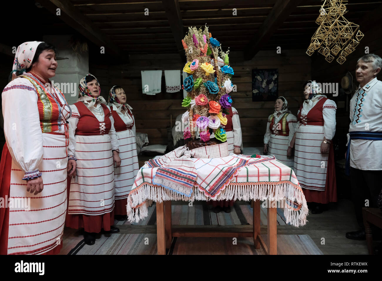 Belarusian People In Traditional Garment Singing Folk Songs Around
