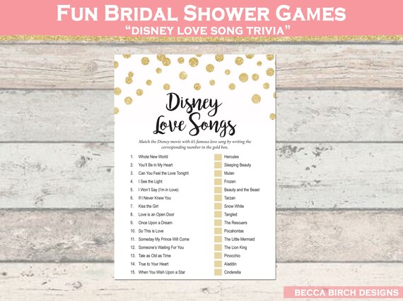 Disney Love Songs Trivia Bridal Shower Games Wedding Etsy