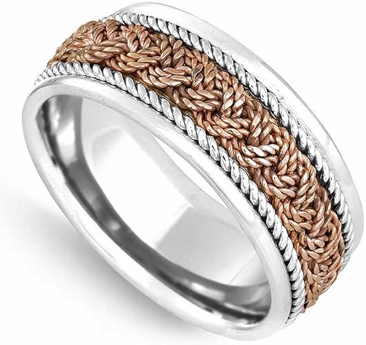 Mens Solid 14k Rose Gold Braided Wedding Band 8mm Comfort Fit 2mm