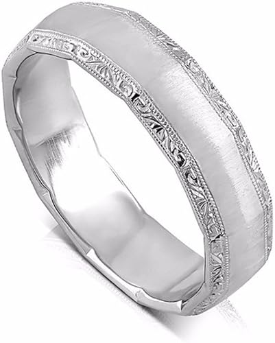 Beaudry Mens Platinum Wedding Band With A Hand Engraved Pattern In