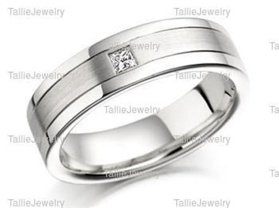 Solitaire Princess Diamond Mens Wedding Band Matt Brushed Ring