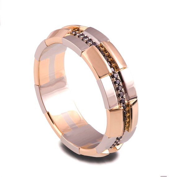 Gold Wedding Band Men S 18k Rose Gold And Black Diamond Etsy