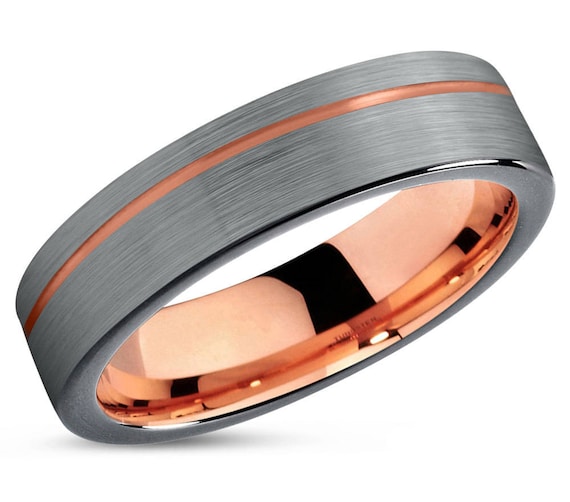Mens Wedding Band Brushed Silver Tungsten Rose Gold 4mm 18k Etsy