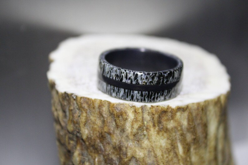 Black Titanium And Black Elk Antler Wedding Band Mens Or Etsy