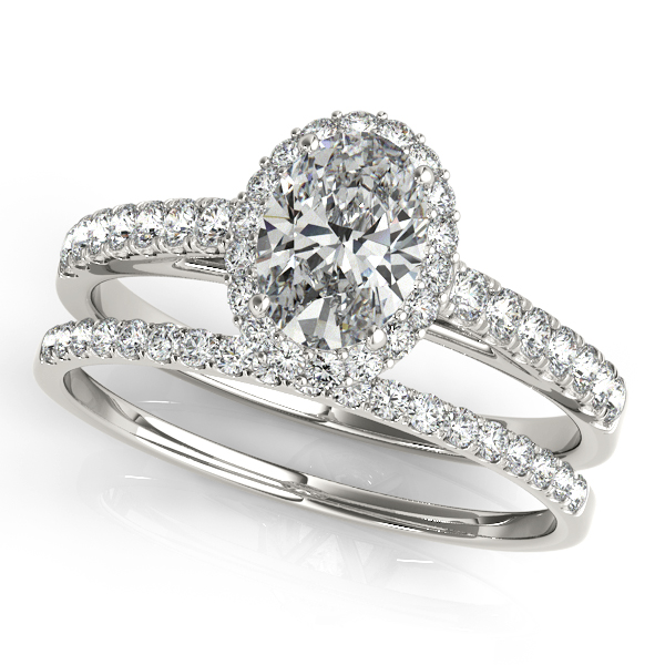 Oval Lab Grown Diamond Engagement Ring With Diamond Halo Pave