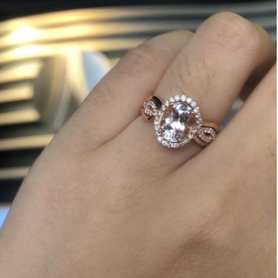 Yixo Halo Puzzle Ring Oval Morganite Engagement Ring Wedding