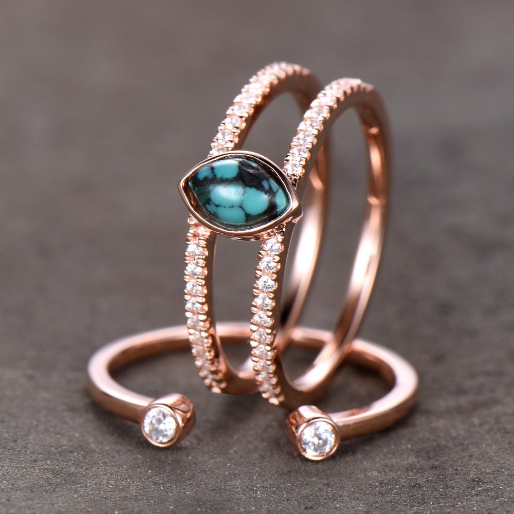 Wedding Ring Set Turquoise Bridal Set 6mm Round Cut Turquoise