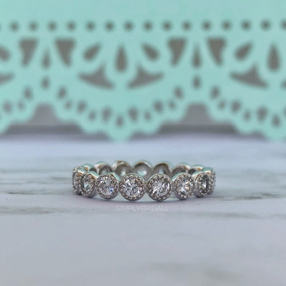 Bezel Round Diamond Eternity Band Simulated Diamond Sterling Etsy