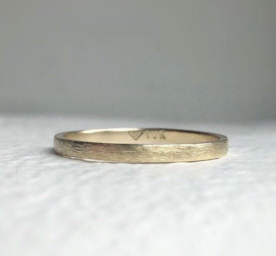 Solid 10k Ethically Sourced Rustic Wedding Band For Her Thin