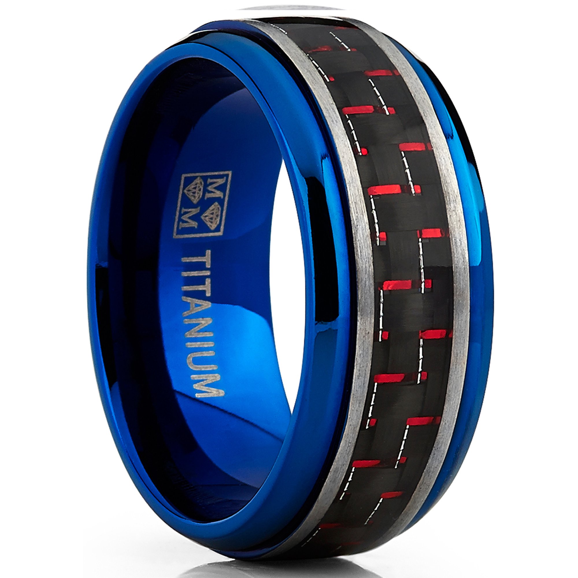 Men S Brushed Blue Titanium Wedding Bands Ring With Black And Red