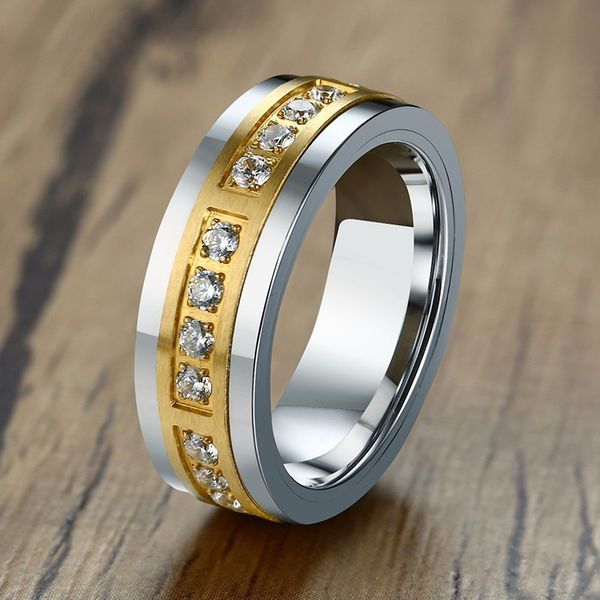 Luxurious Tungsten Carbide Rings For Men Two Tone Cubic Zirconia