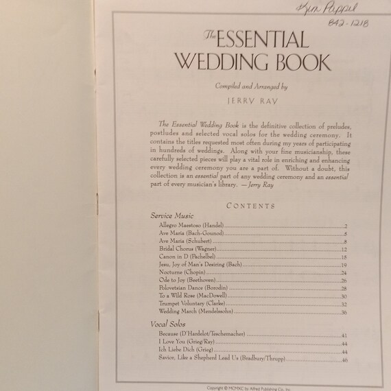 The Essential Wedding Book Wedding Songs Piano Vocal Vtg By Etsy
