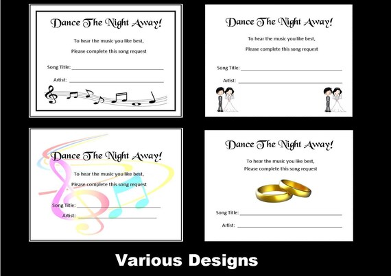 Wedding Music Song Request Cards X 24 Various Designs To Etsy