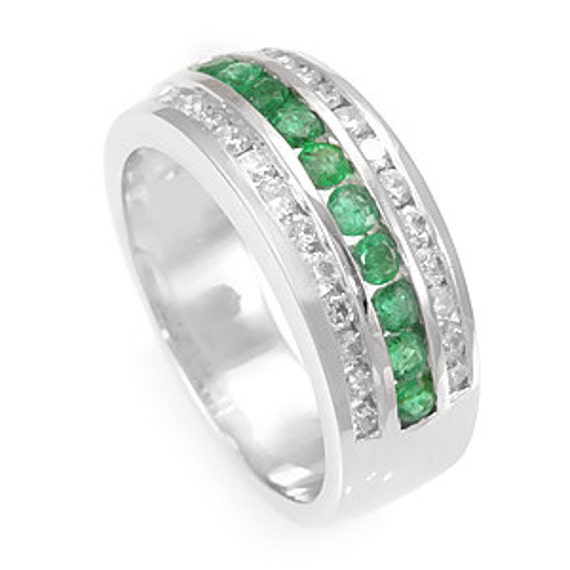 Mens Emerald And Diamond Ring Wedding Band Princess Cut 14kt