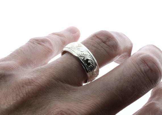 Engraved White Gold Wedding Band Hand Engraved Gold Ring Hand Etsy
