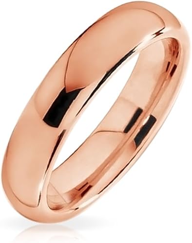 Plain Simple Thin Dome Couples Titanium Wedding Band Polished Rose