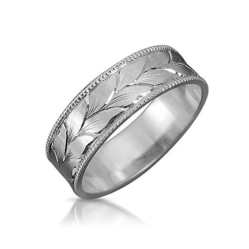 Amazon Com Wide Solid 14k White Gold Wedding Band With Hand
