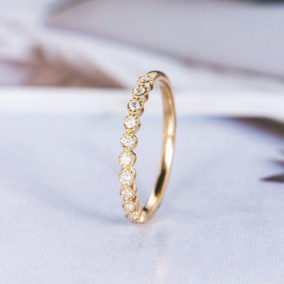 Bezel Set Diamond Wedding Band Milgrain Yellow Gold Women Half Etsy