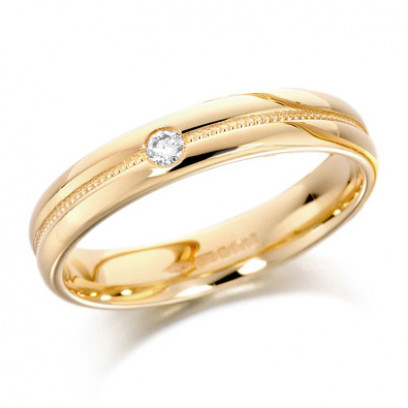 9ct Yellow Gold Ladies 4mm Wedding Ring With Grooved And