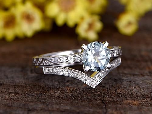 Amazon Com 2pcs Wedding Rings Set 7mm Round Cut Vs Natural Blue