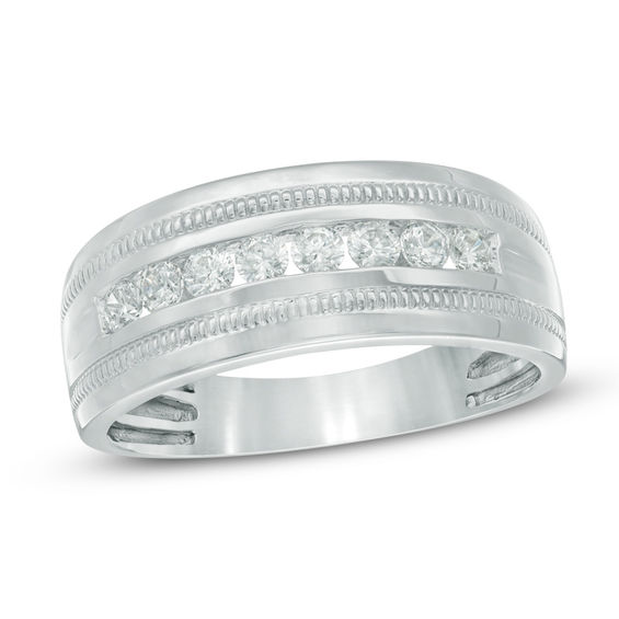 Men S 1 2 Ct T W Diamond Milgrain Wedding Band In 10k White Gold