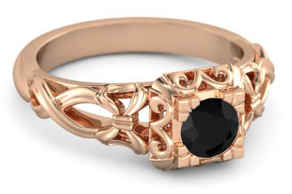 Black Onyx Engagement Ring 14k Rose Gold Ring With Diamonds