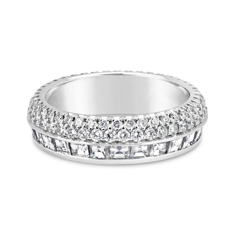 Round And Emerald Cut Diamond Two Row Eternity Wedding Band For
