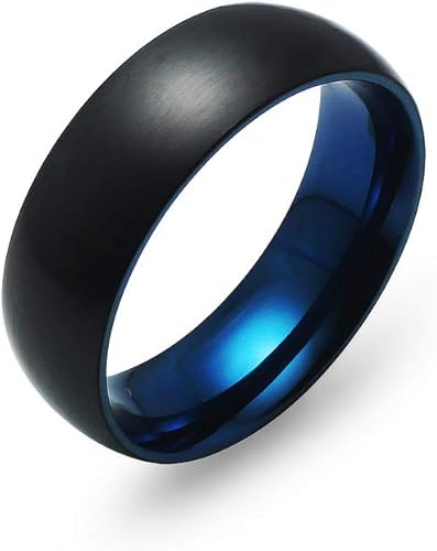 Silverline Stainless Steel Mens 8mm Band Ring Black With Blue