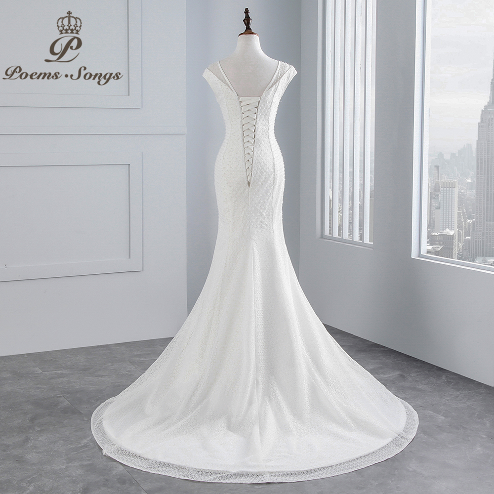 Poemssongs 2019 Sexy Backless Sequined Lace Wedding Dress Robe