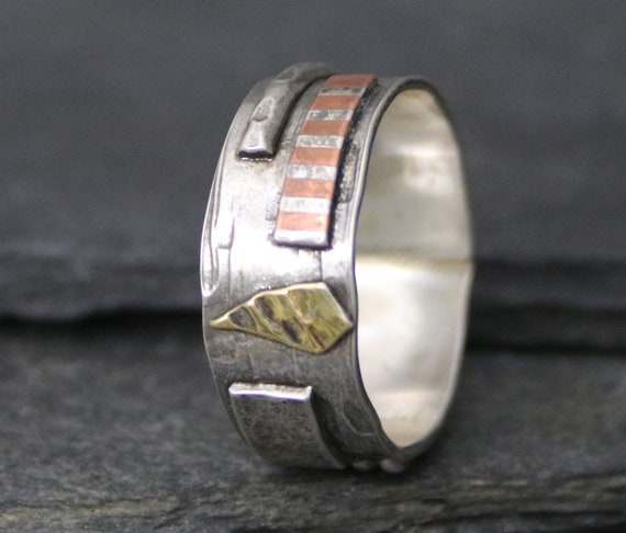 Unique Wedding Band Unconventional Mixed Metal Ring No Stone Etsy
