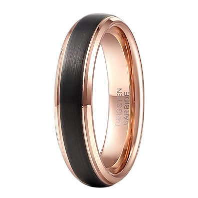 Mens Womens Black Rose Gold Tungsten Carbide Ring 8mm Center