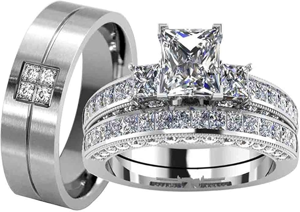 Amazon Com Aonew Couple Rings Three Square Cut Cz Stones Womens