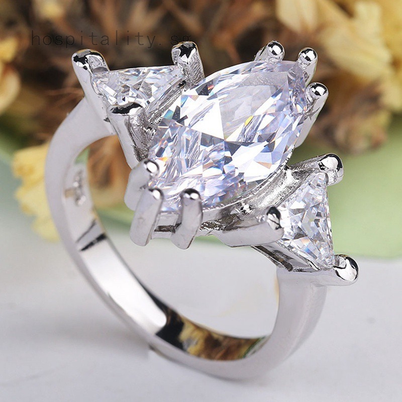 Women Silver Engagement Ring Cut Diamond Jewelry Proposal Gift