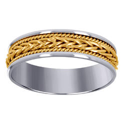 Jewelryweb 14k Two Tone Gold Mens Hand Braided Wedding Band