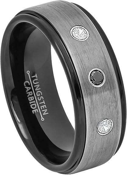 0 21ctw Black White Diamond 3 Stone Tungsten Ring Brushed