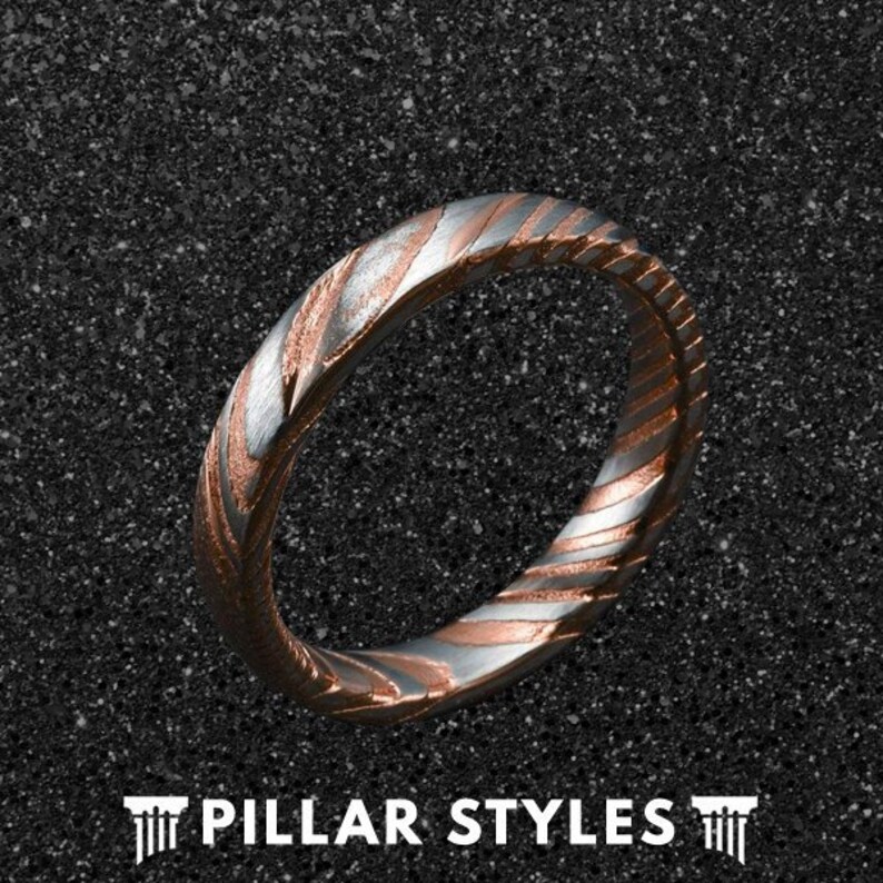 4mm Damascus Steel Ring Mens Wedding Band Damascus Rose Gold Etsy