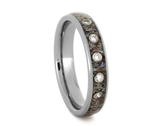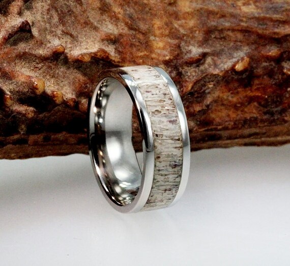 Deer Antler Wedding Ring Mens Titanium Wedding Band Etsy
