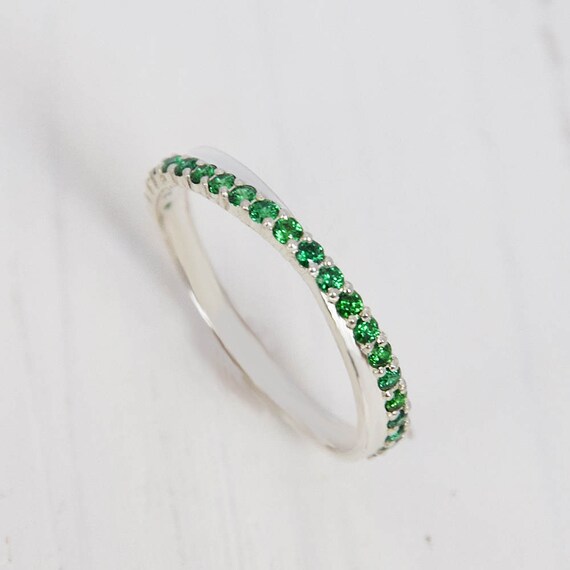 Unique Womens Emerald Wedding Band Silver Wedding Band For Etsy