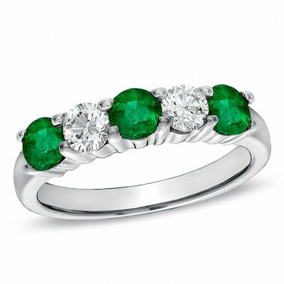 Emerald And 3 8 Ct T W Diamond Five Stone Wedding Band In 14k