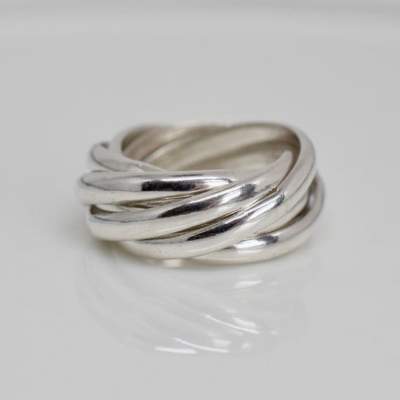 5 Band Russian Wedding Ring Sterling Silver Vintage C1980 Top